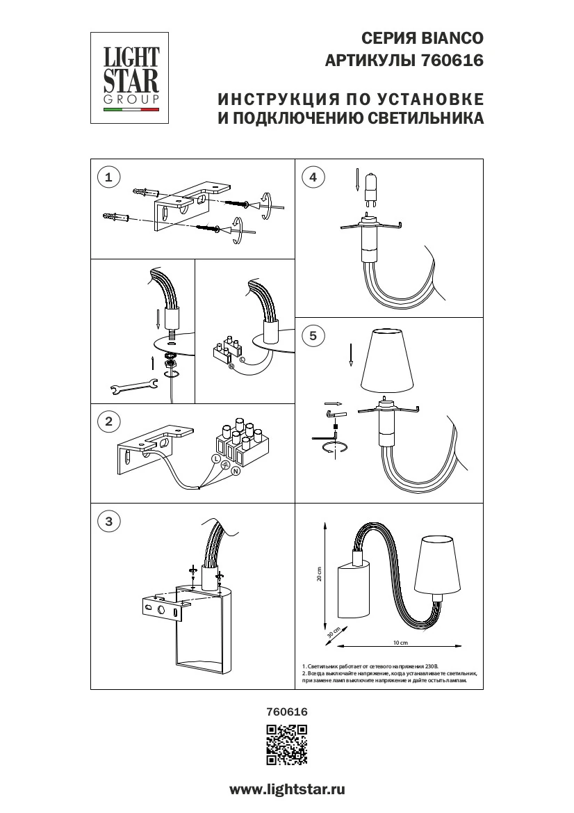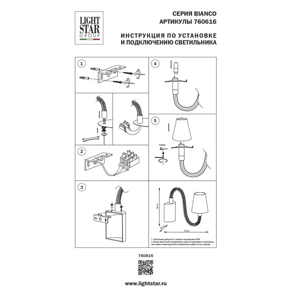 Lightstar 760616 Бра BIANCO 1х40W G9 ХРОМ БЕЛ. стекло