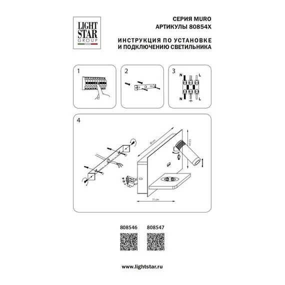 Lightstar 808546 Бра MURO 4W+3W LED LM БЕЛЫЙ 3000K