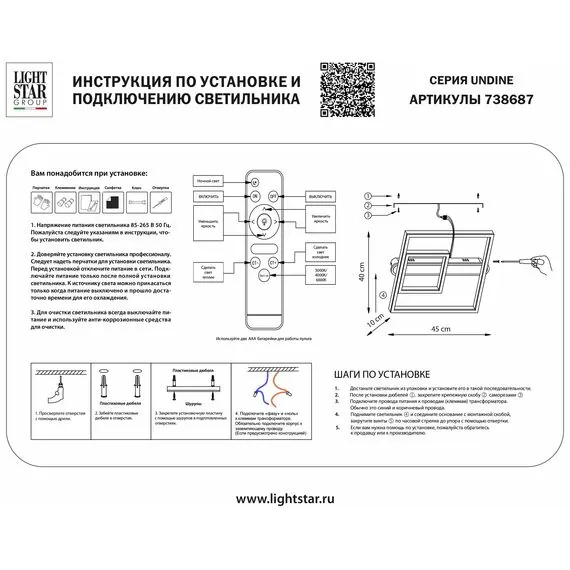 Lightstar 738687 Настенно-потолочный светильник UNDINE 90W LED 3872LM ЧЕРНЫЙ 3000-6000K