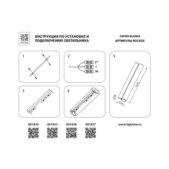 Lightstar 801837 Светильник настенный BLANDA 3х40W E14 ЧЕРНЫЙ/БЕЛЫЙ