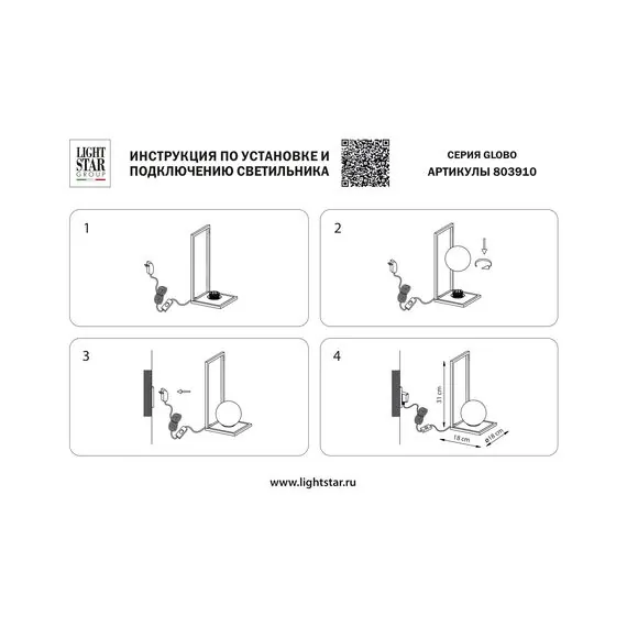 Lightstar 803910 Настольная лампа GLOBO LED 6W 300LM ЧЕРНЫЙ/БЕЛЫЙ 3000K