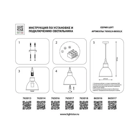 Lightstar 765016 Люстра LOFT 1х40W E14 БЕЛЫЙ