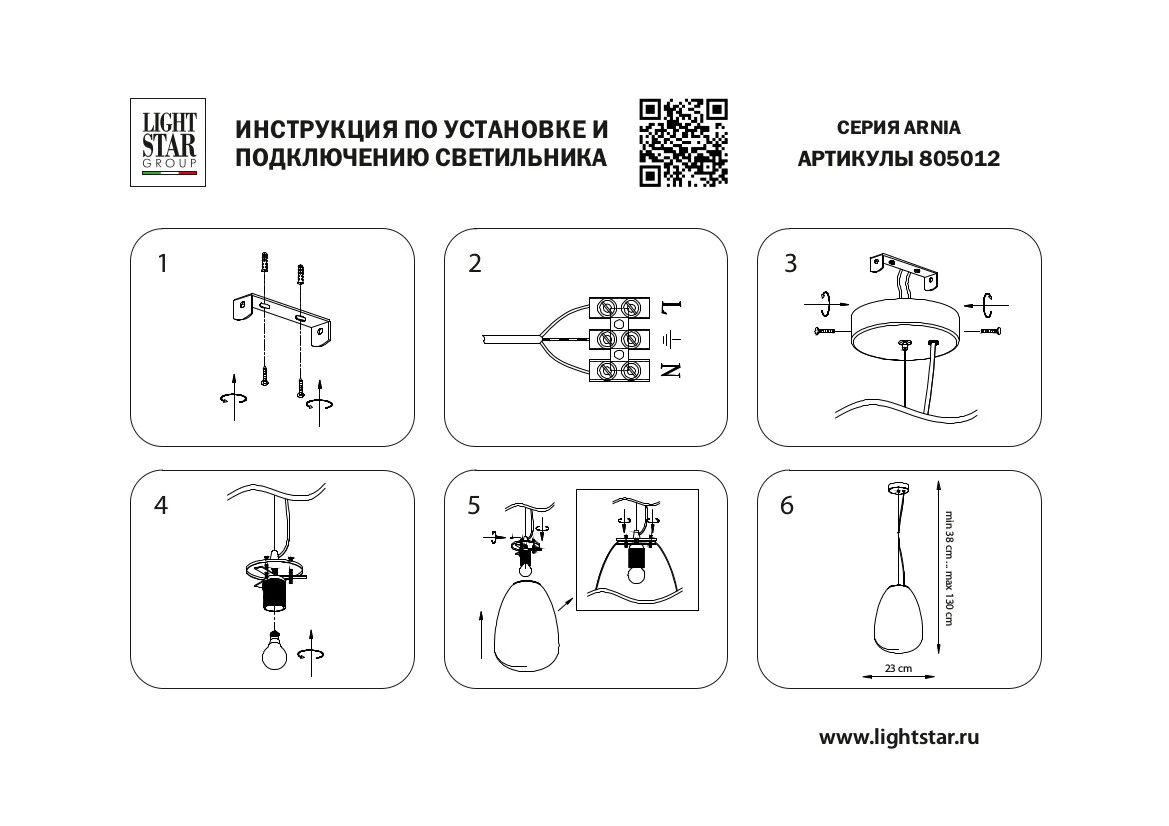 Lightstar 805012 Люстра ARNIA 1х40W E27 БЕЛЫЙ