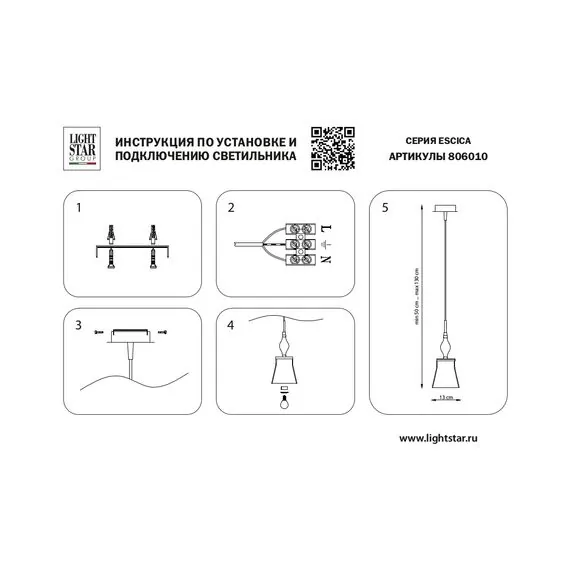 Lightstar 806010 Подвес ESCICA 1х40W E14 БЕЛЫЙ/КОНЬЯК/ХРОМ