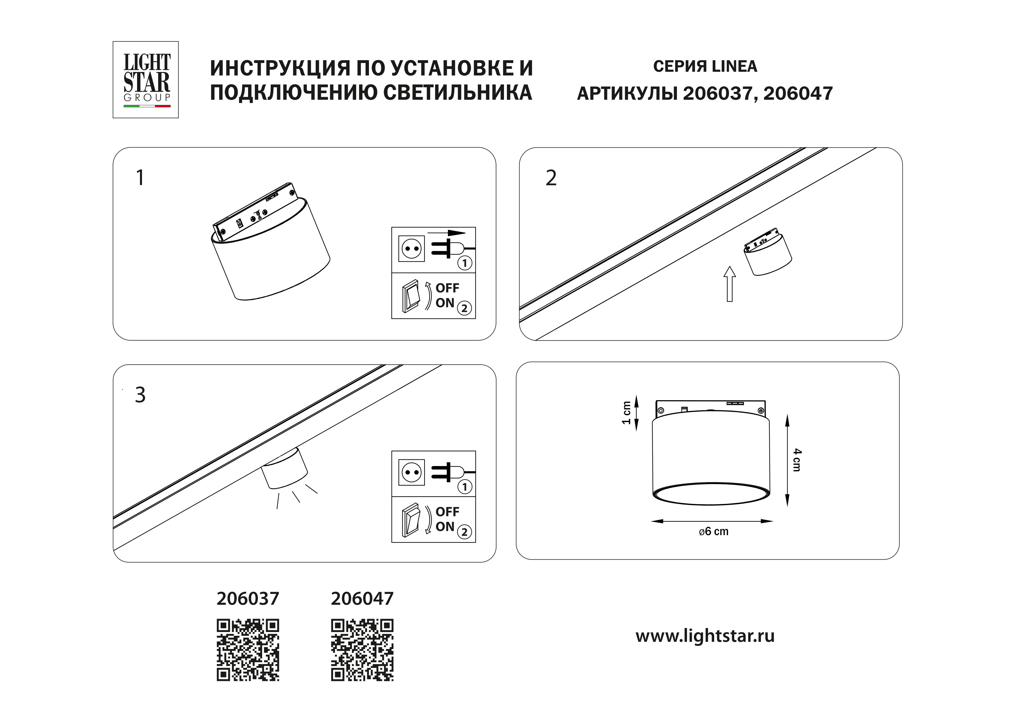 Lightstar 206037 Светильник 24V д/1-фазн трека LINEA LED 5W 450LM 36G ЧЕРНЫЙ 3000K