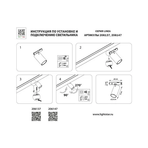 Lightstar 206137 Светильник 24V д/1-фазн трека LINEA LED 3W 180LM 24G ЧЕРНЫЙ 3000K