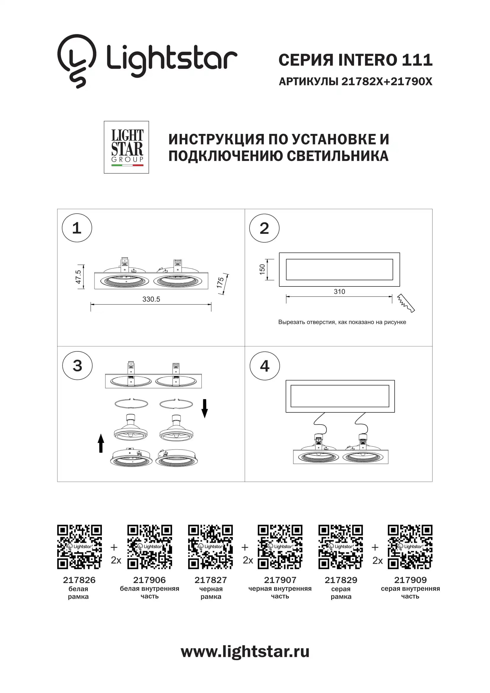 Lightstar 217827 Рамка INTERO 111 Double QUADRO ЧЕРНЫЙ