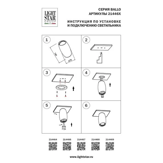 Lightstar 214466 Светильник BALLO HP16 БЕЛЫЙ