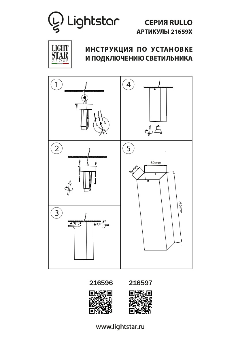 Lightstar 216596 Светильник RULLO HP16 БЕЛЫЙ