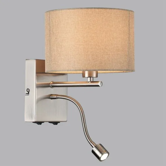 LUMION 8250/2W MODERNI LN25 000 никель/бежевый, металл/текстиль бра Е14 40W+ LED 3W 4000K 220V NIKKI