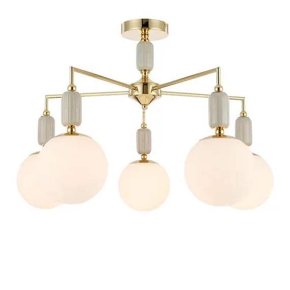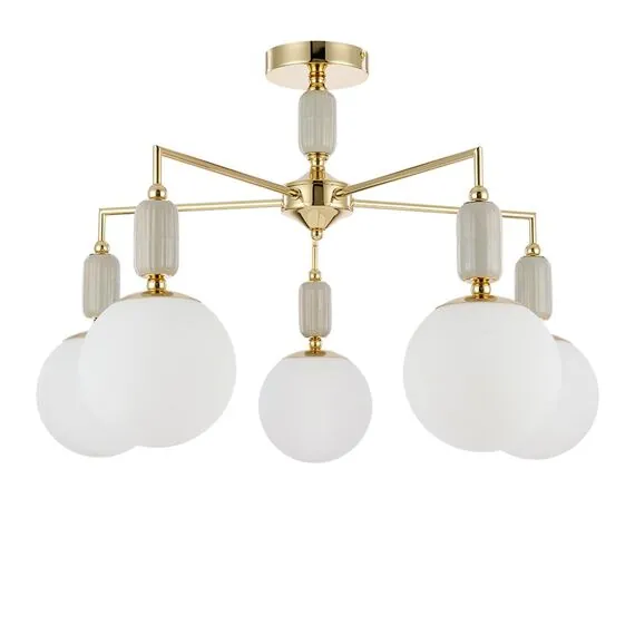 LUMION 6580/5C CLASSI LN25 53 французское золото, серый/белый металл, керамика/стекло Люстра потолочная E14 5*40W 220V VIVIEN