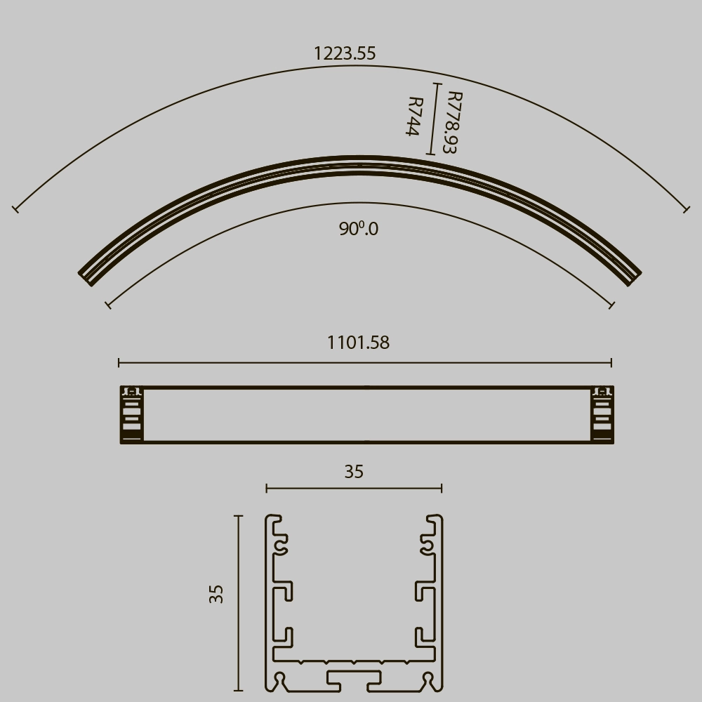 Maytoni Led Strip ALM-3535R-B-EX-90°-1.5M Радиусный профиль 35x35 Ø1500мм внешний 1 круга