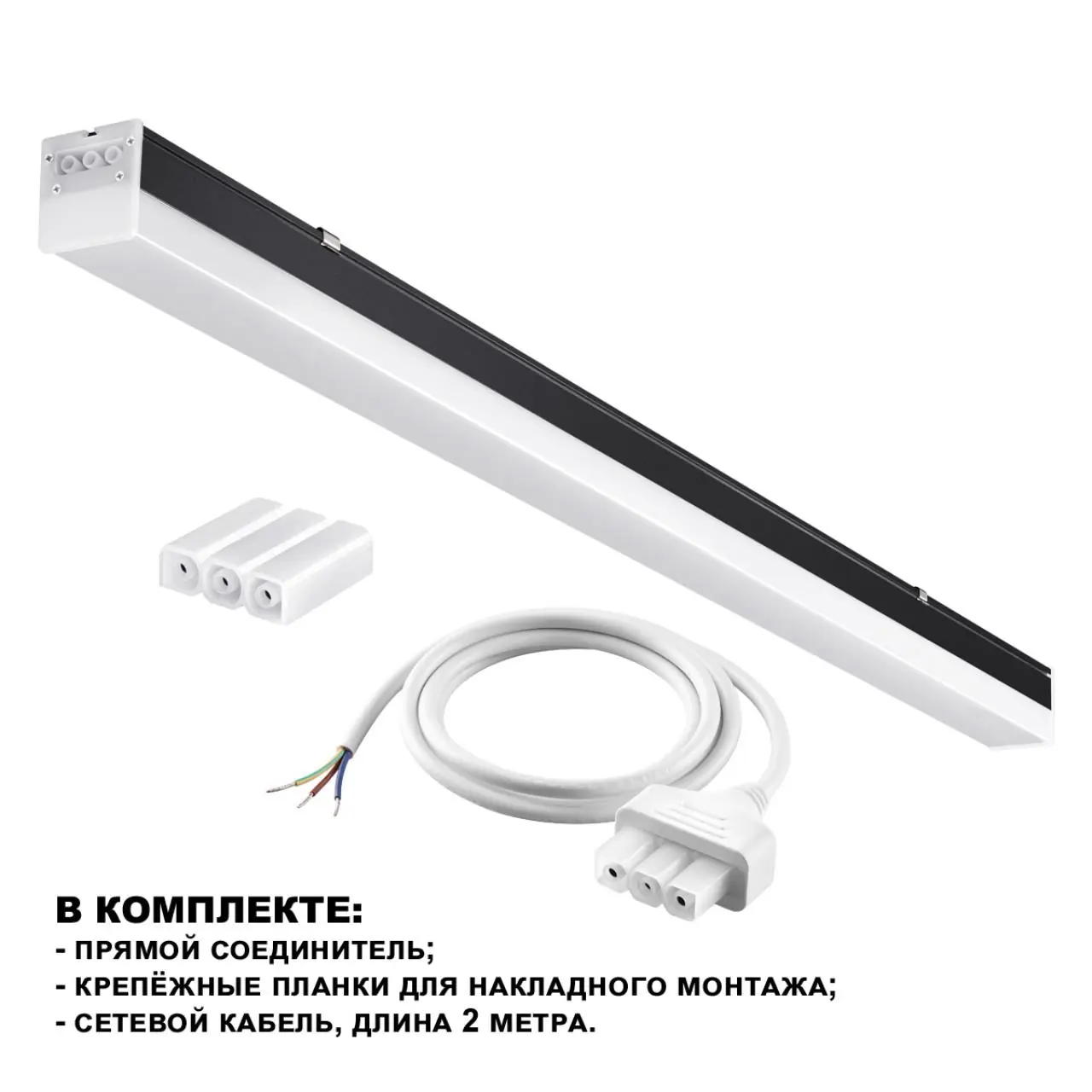 Светильник линейный светодиодный, в комплекте прямой соединитель, крепёжные планки, сетевой кабель 2