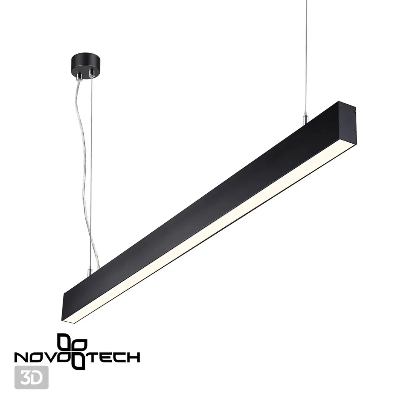 Линейные подвесные светодиодные светильники ITER. Удобное решение – купил и установил. Модельный ряд представлен: в двух размерах (Д)903 мм и (Д)1203мм, в двух классических цветах чёрном и белом. Способ установки только подвесной (подвесы в комплекте), потому что светильник светит вверх (12Вт) и вниз (40Вт). Драйвер электропитания размещается внутри светильника.