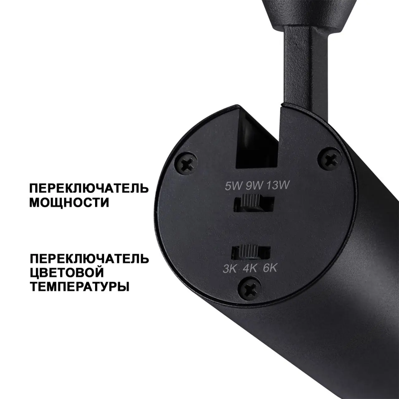 Однофазный трехжильный трековый светильник с переключателем цветовой температуры и мощности