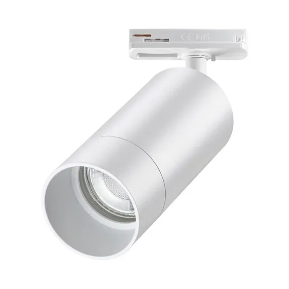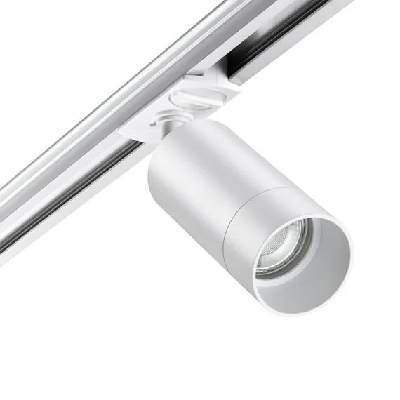 Светильник трековый для однофазного двухжильного (универсального) шинопровода. В корпусе светильника есть акриловые части, поэтому его используют только с LED лампой max.9Вт.