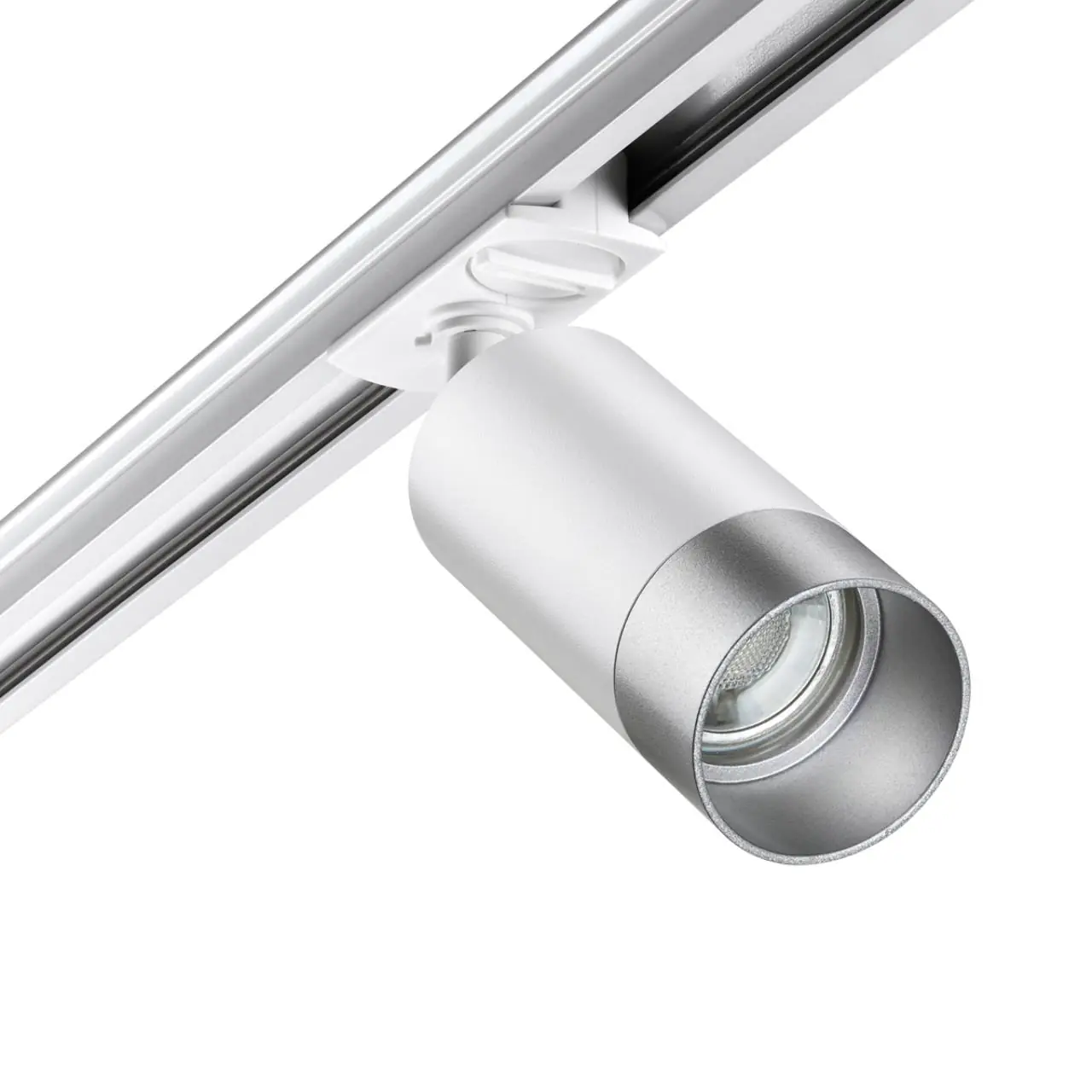 Светильник трековый для однофазного двухжильного (универсального) шинопровода. В корпусе светильника есть акриловые части, поэтому его используют только с LED лампой max.9Вт.
