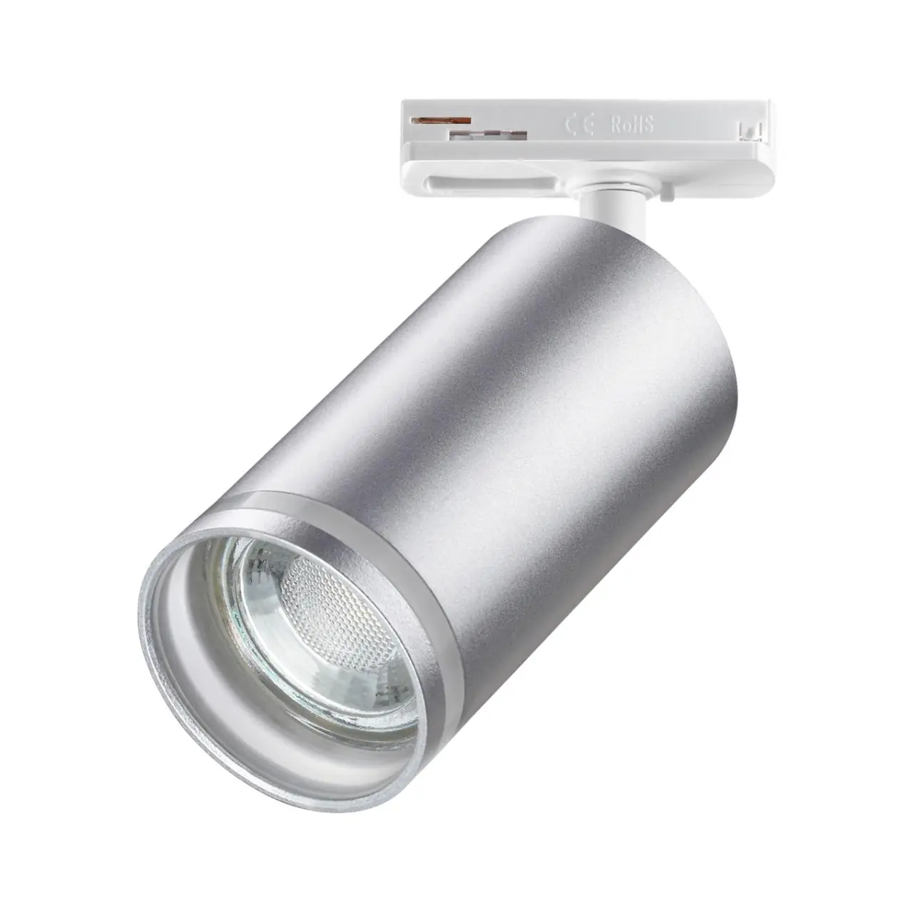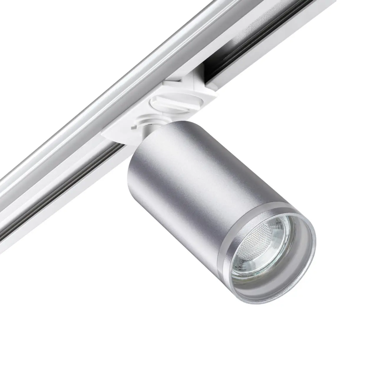 Светильник трековый для однофазного двухжильного (универсального) шинопровода. В корпусе светильника есть акриловые части, поэтому его используют только с LED лампой max.9Вт.