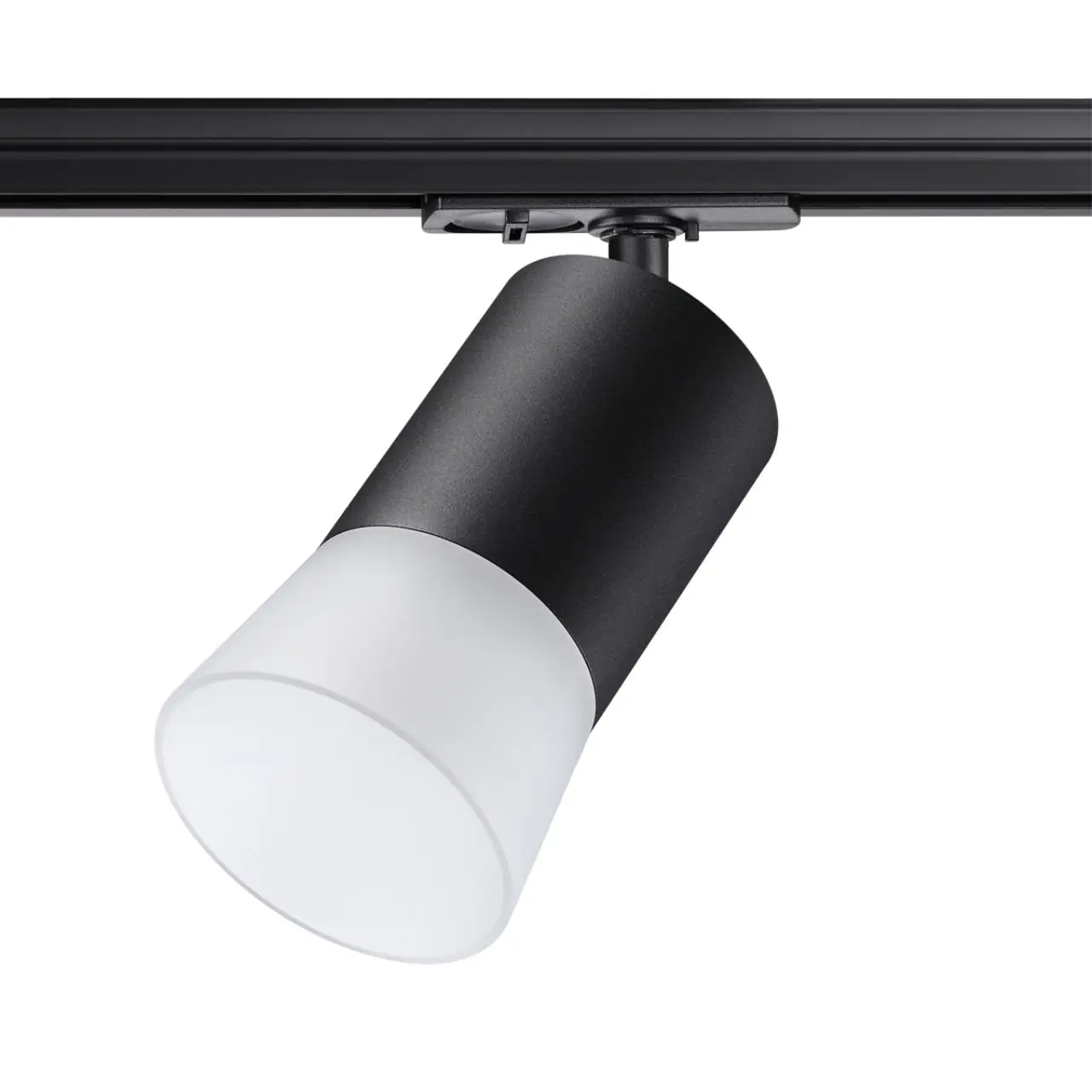 Светильник трековый для однофазного двухжильного (универсального) шинопровода. В корпусе светильника есть акриловые части, поэтому его используют только с LED лампой max.9Вт.
