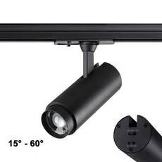 Однофазный трехжильный трековый светодиодный светильник NAIL с переключателем цветовой температуры (3000К-4000К-6000К) и переключателем мощности (5Вт-9Вт-13Вт). А так же с изменяемым углом рассеивания (от 15° до 60°).