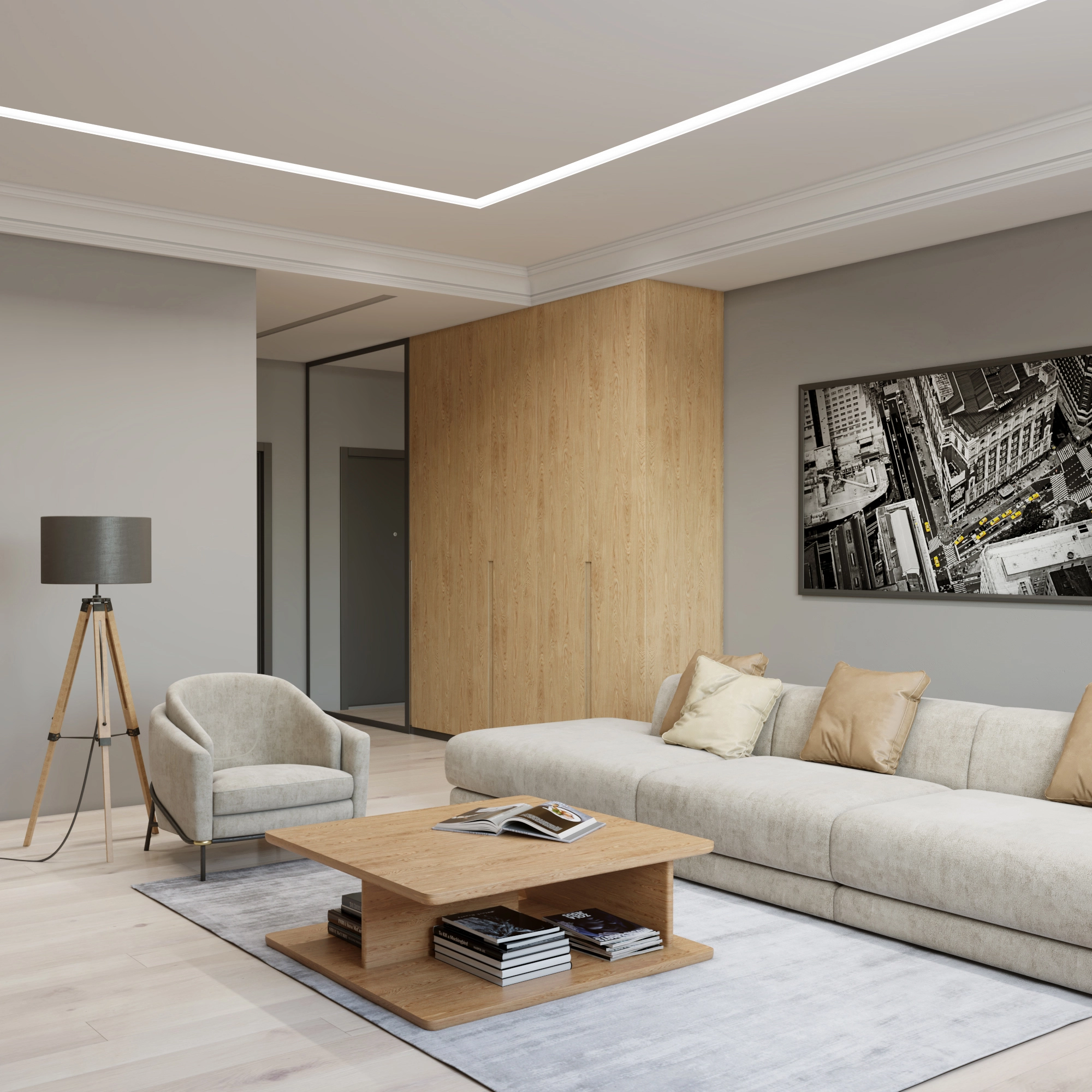 Корпус гипсовый (1 м) - 1 шт; Радиатор алюминиевый под светодиодную ленту (2 м) - 1/2 шт; Экран поликарбонатный рассеивающий (2,5 м) - 1/2 шт; Центратор - 2 шт; Руководство по эксплуатации и установке - 1 шт; Упаковка индивидуальная (пенопласт, картон) -