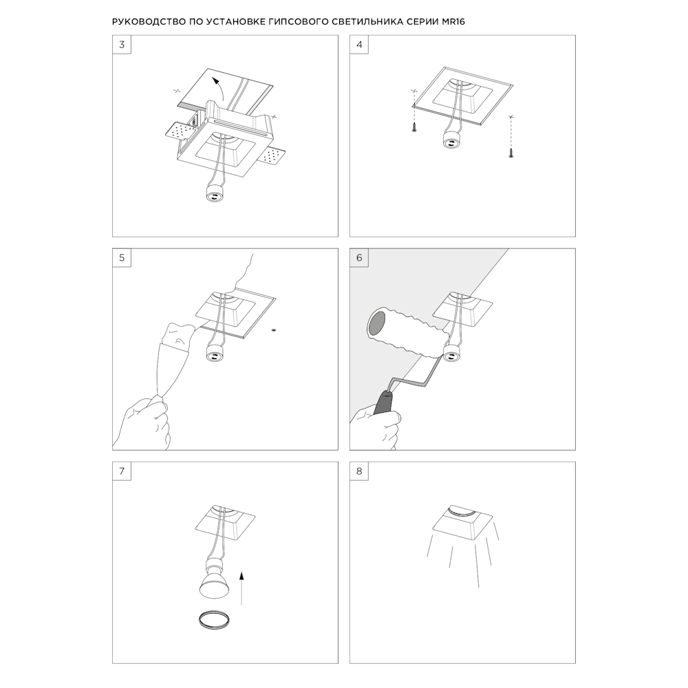 Корпус гипсовый - 1 шт; Кронштейн монтажный регулируемый - 2 шт; Винт установочный - 4 шт; Патрон керамический GU10 - 1 шт; Клемма соединительная - 2 шт; Кольцо стопорное - 1 шт; Руководство по эксплуатации и установке - 1 шт; Упаковка индивидуальная (пен