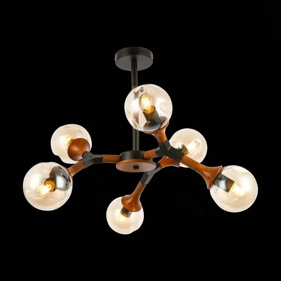 EVOLUCE SLE109402-06 Светильник потолочный Черный, Темное дерево/Прозрачный, Янтарный E27 6*60W