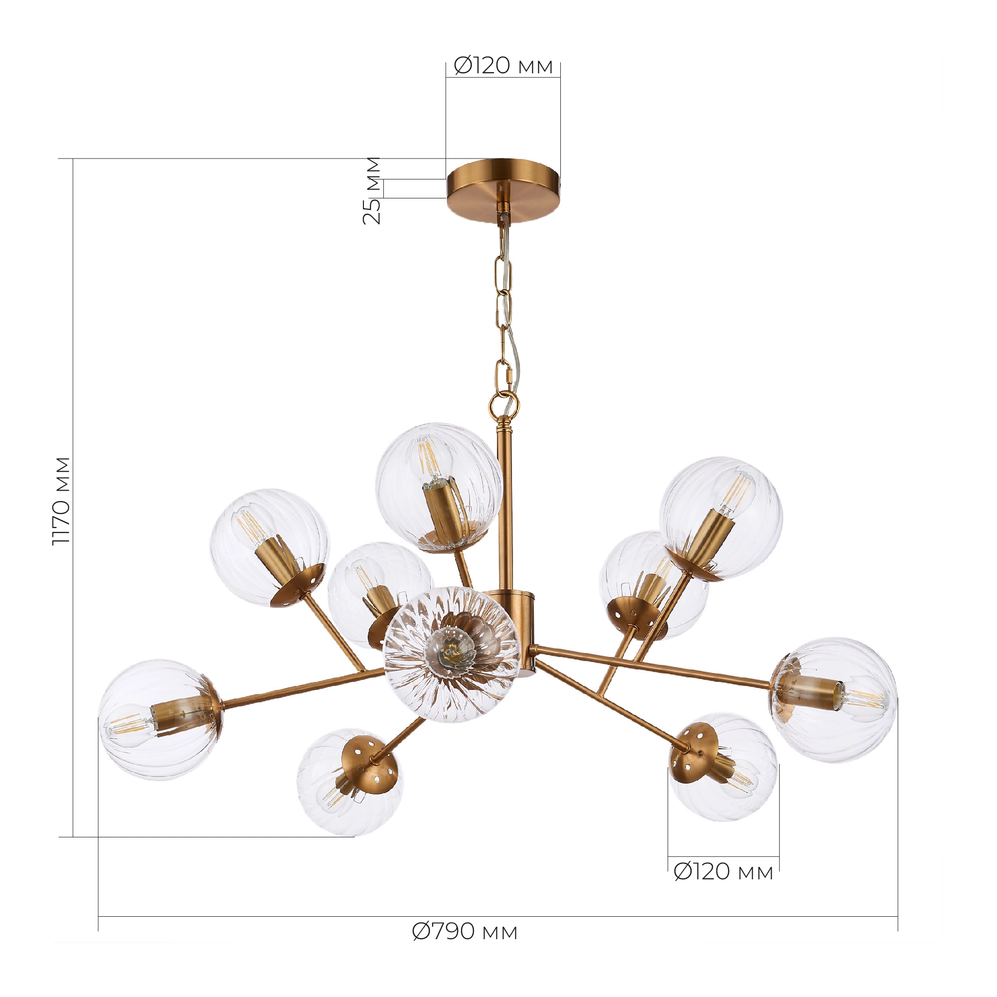 EVOLUCE SLE220803-10 Светильник подвесной Латунь/Прозрачный E14 10*40W