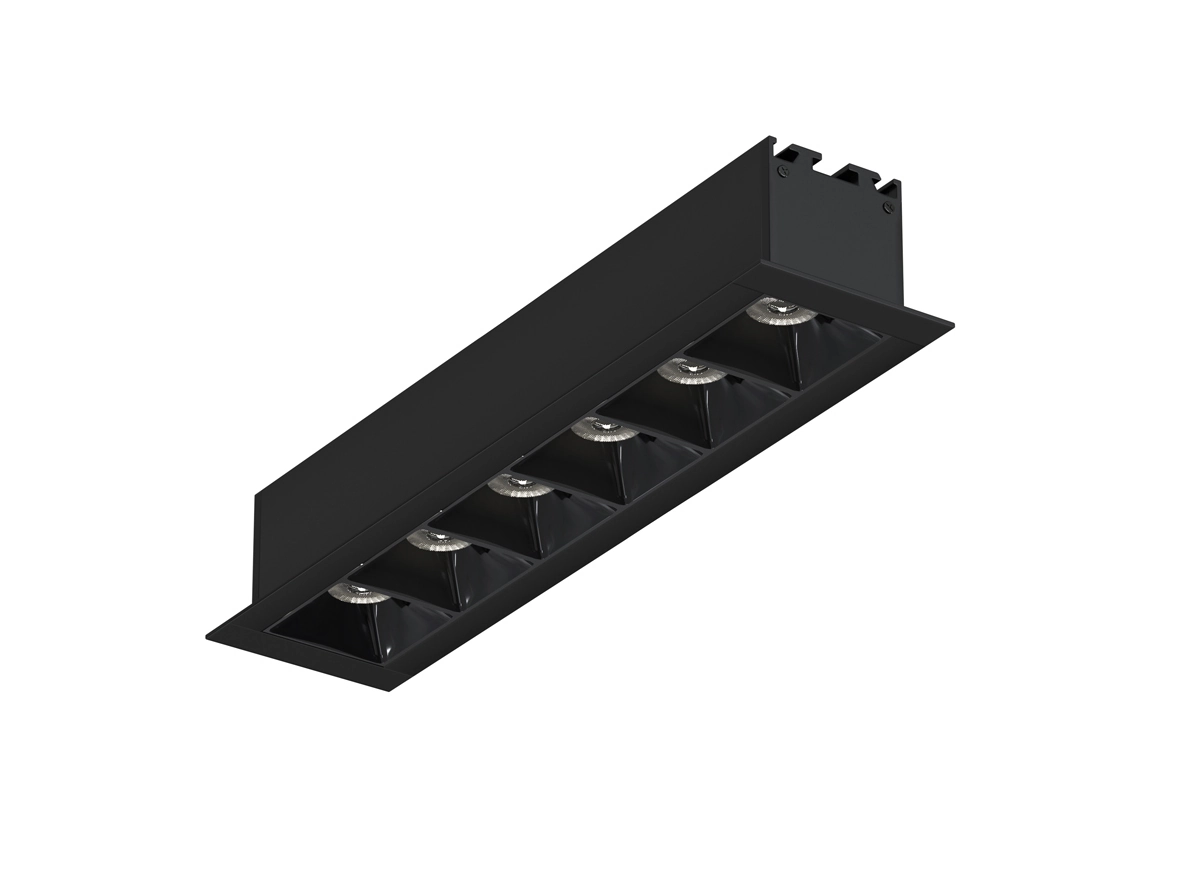 Источник света в виде рефлектора изготовлен из черного глянцевого пластика. Конструкция рефлектора подавляет блики, а зеркальная поверхность отражателя многократно увеличивает светоотдачу. Дает направленный теплый свет. Корпус изготовлен из алюминия. Цвет корпуса черный. Опционально: управление по протоколу DALI.
