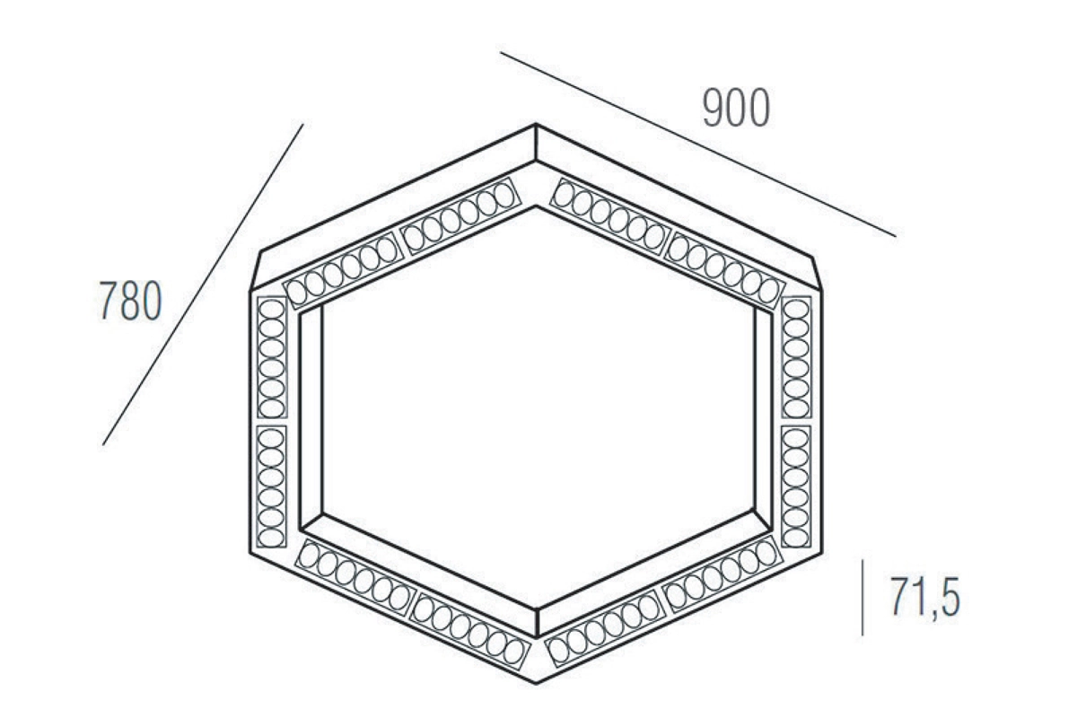 Donolux LED Eye-hex св-к подвесной, 72W, 900х780мм, H71,5мм, 9380Lm, 34°, 3000К, IP20, корпус черный, белые модули, черный декор, блок питания AC/DC 24V в комплекте