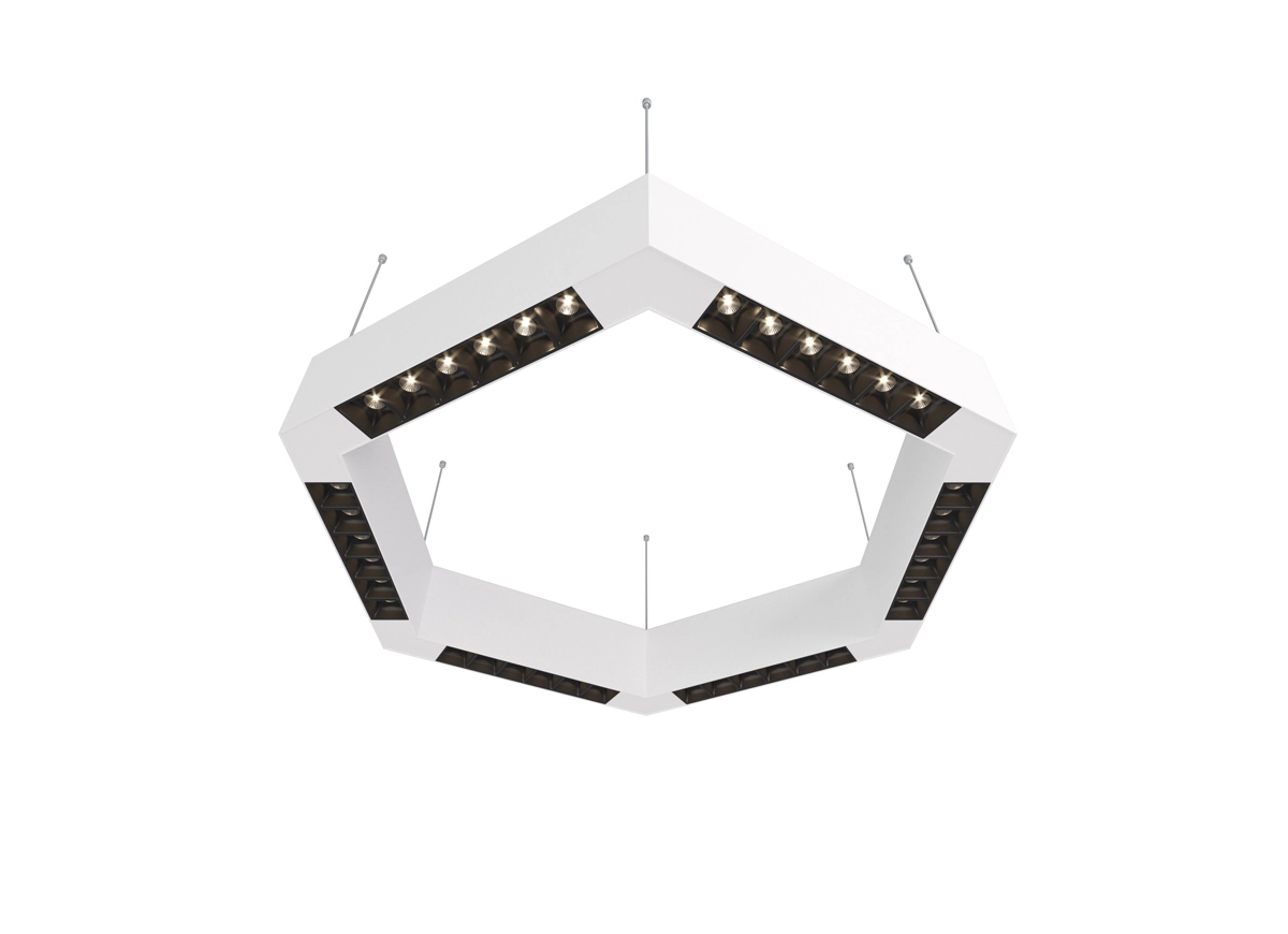 Donolux LED Eye-hex св-к подвесной, 36W, 500х433мм, H71,5мм, 2700Lm, 34°, 3000К, IP20, корпус белый, черные модули, белый декор, блок питания AC/DC 24V в комплекте