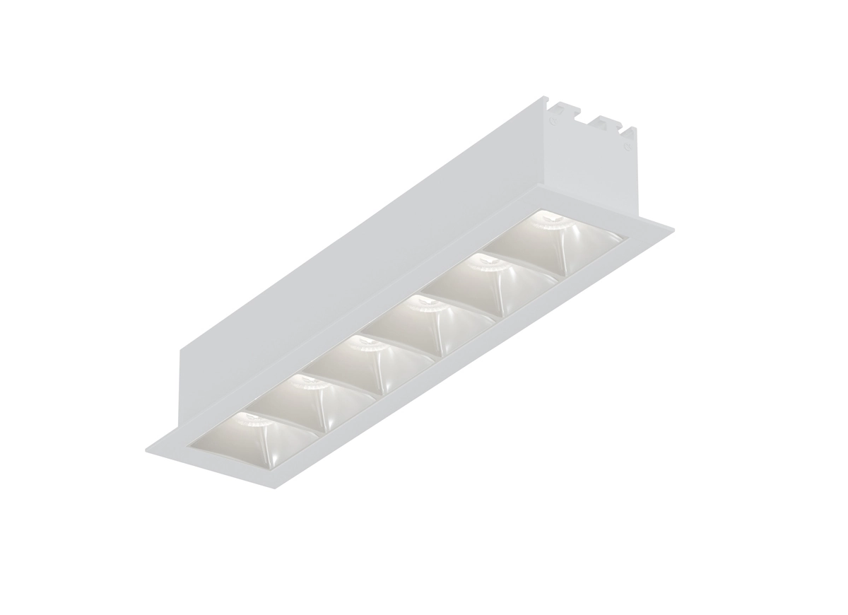 Источник света в виде рефлектора изготовлен из черного глянцевого пластика. Конструкция рефлектора подавляет блики, а зеркальная поверхность отражателя многократно увеличивает светоотдачу. Дает направленный теплый свет. Корпус изготовлен из алюминия. Цвет корпуса белый. Опционально: управление по протоколу DALI.